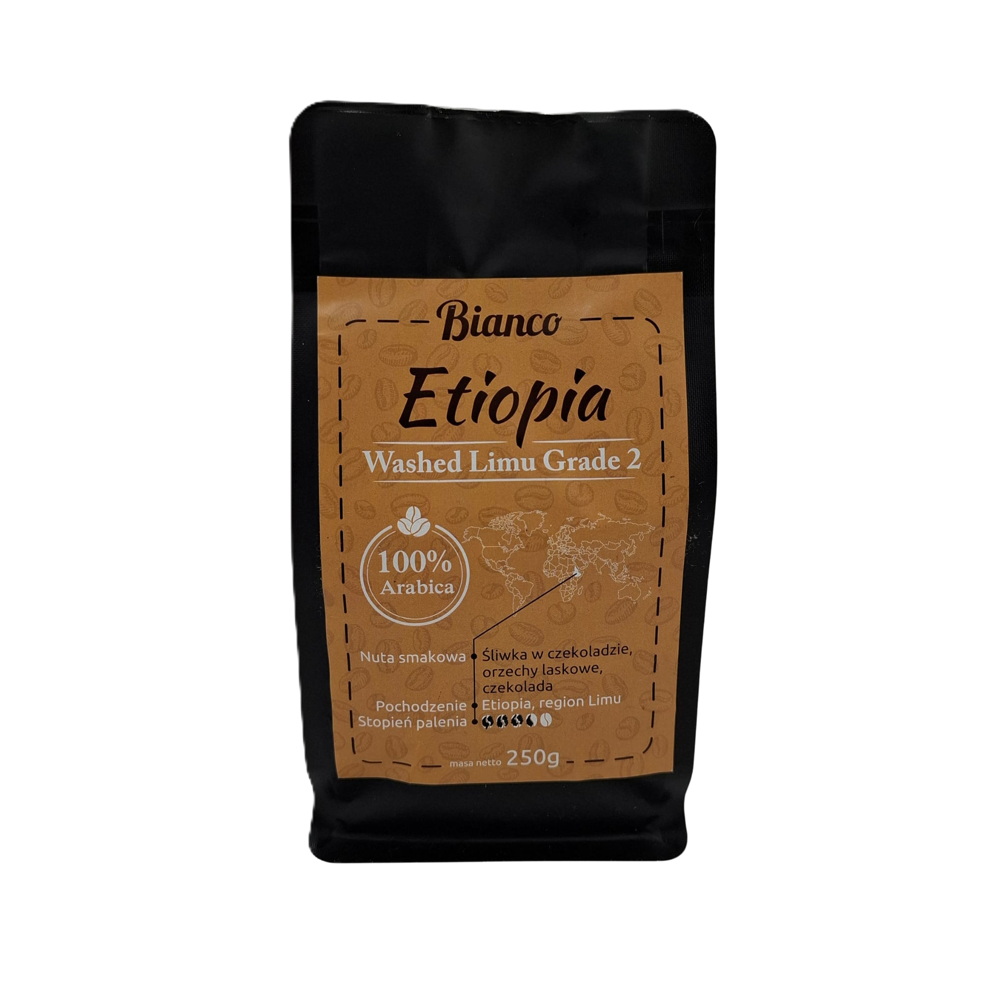 Delikatna i aromatyczna arabika z regionu Limu w Etiopii. W smaku wyczuwalne nuty cytryny, brzoskwini i czarnej herbaty. Świeżo palona w naszej palarni, dostępna w ziarnach lub mielona. Idealna do dripa, Aeropressu i ekspresu przelewowego.