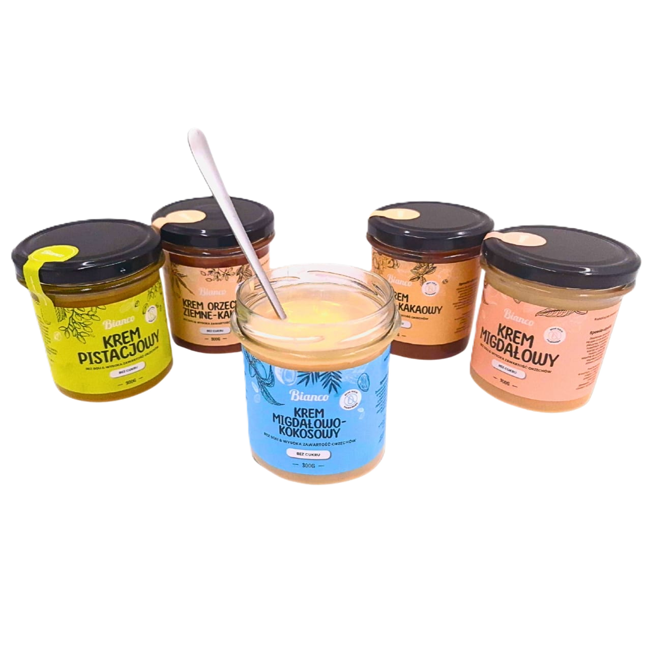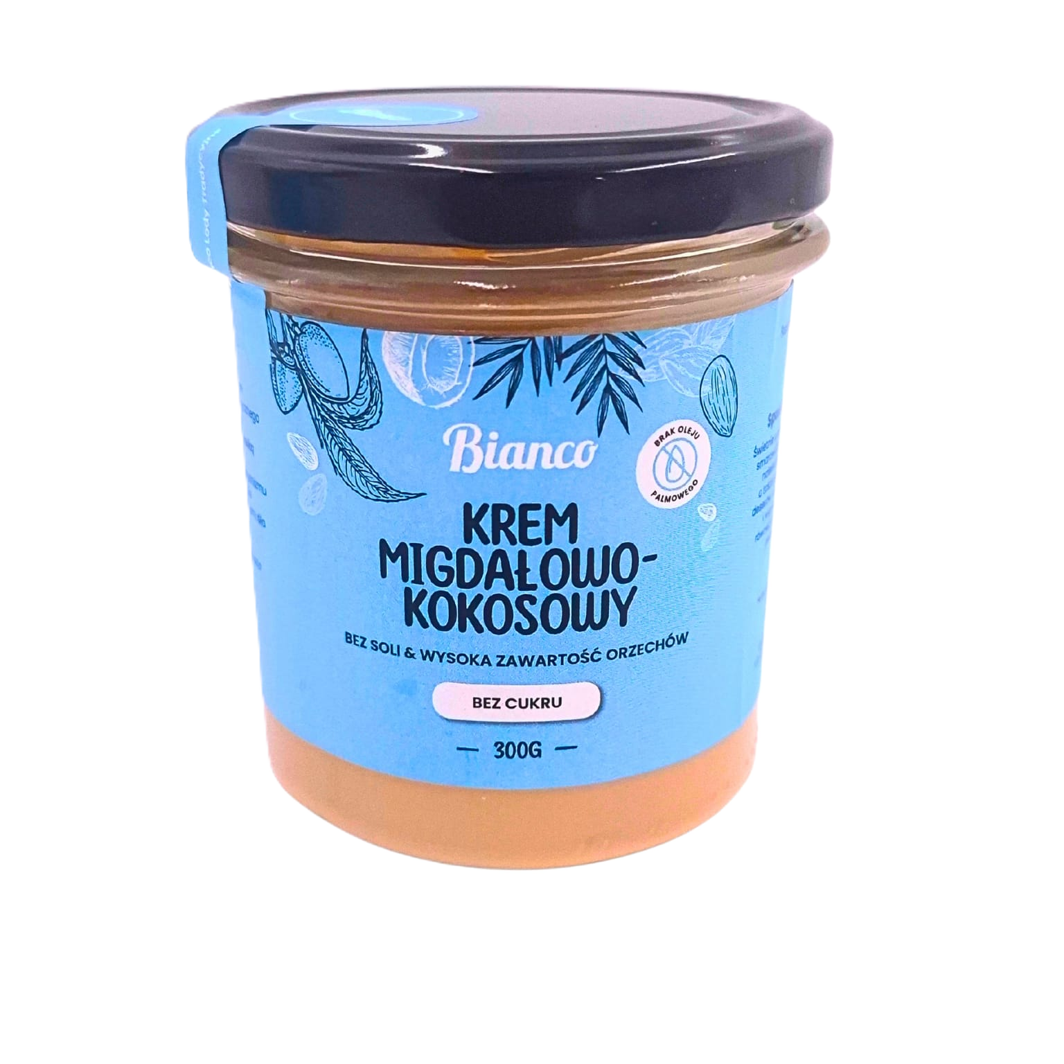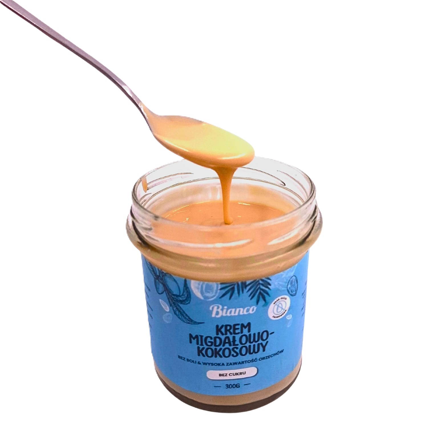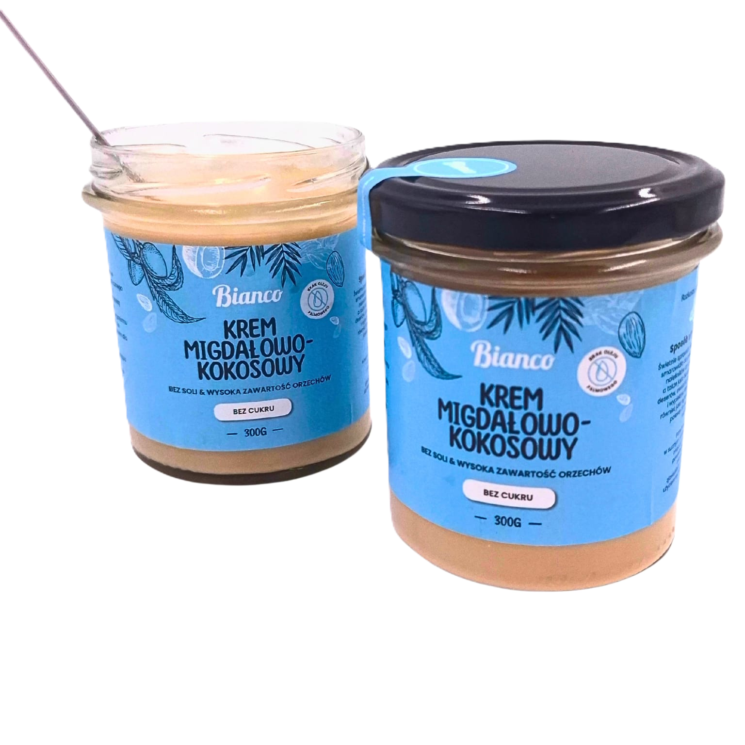 Rzemieślniczy krem migdałowo-kokosowy bez cukru, tworzony w małych partiach. Delikatny smak migdałów, kremowy kokos i subtelna słodycz z maltitolu. Idealny do smarowania, deserów i zdrowych przekąsek — naturalny, gładki i premium.