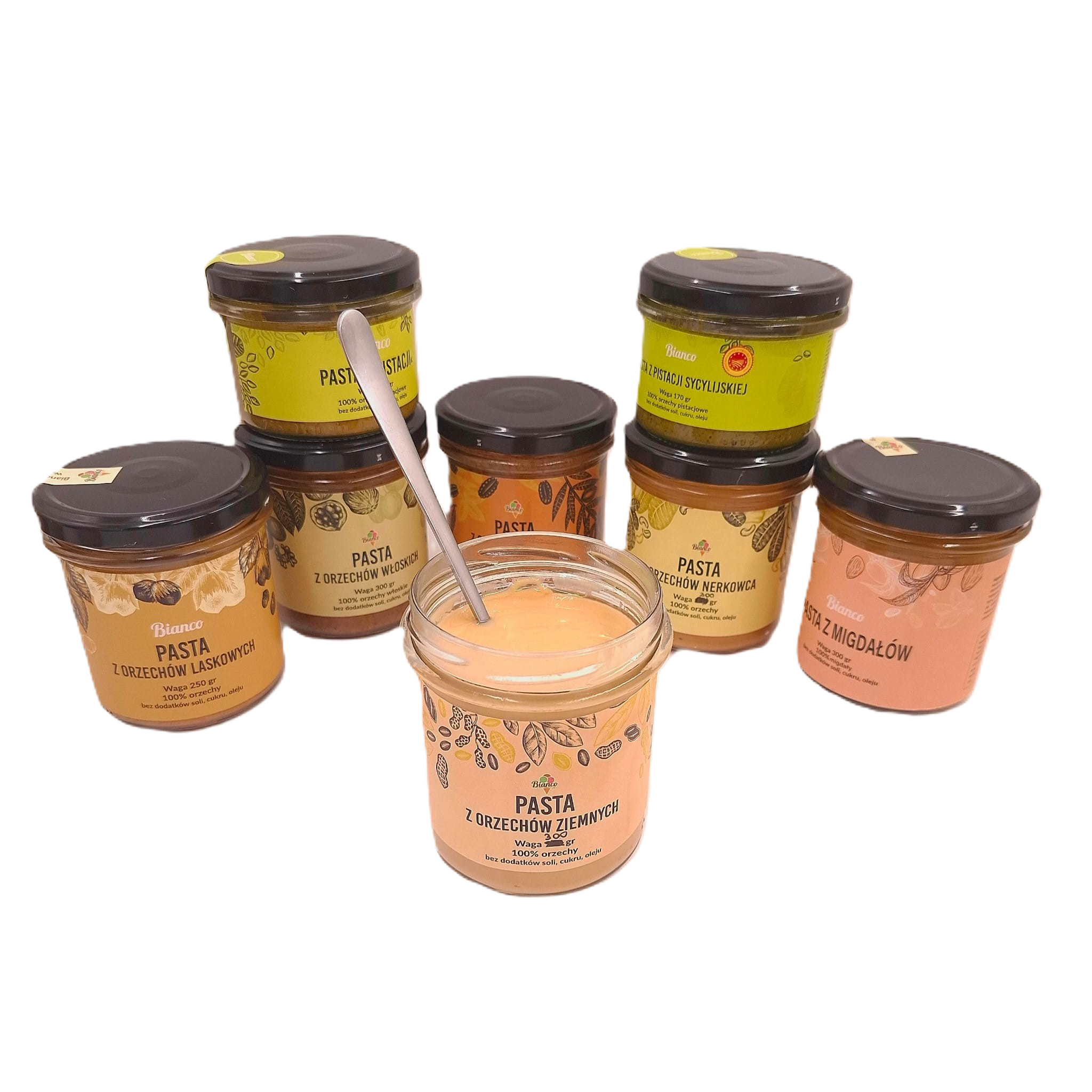 Rzemieślnicza pasta o kremowej konsystencji i wyrazistym, naturalnym smaku prażonych orzechów ziemnych. Powstaje wyłącznie z wyselekcjonowanych orzechów, bez dodatku soli, cukru i olejów. Dla tych, którzy cenią czystą prostotę i głębię naturalnego smaku.