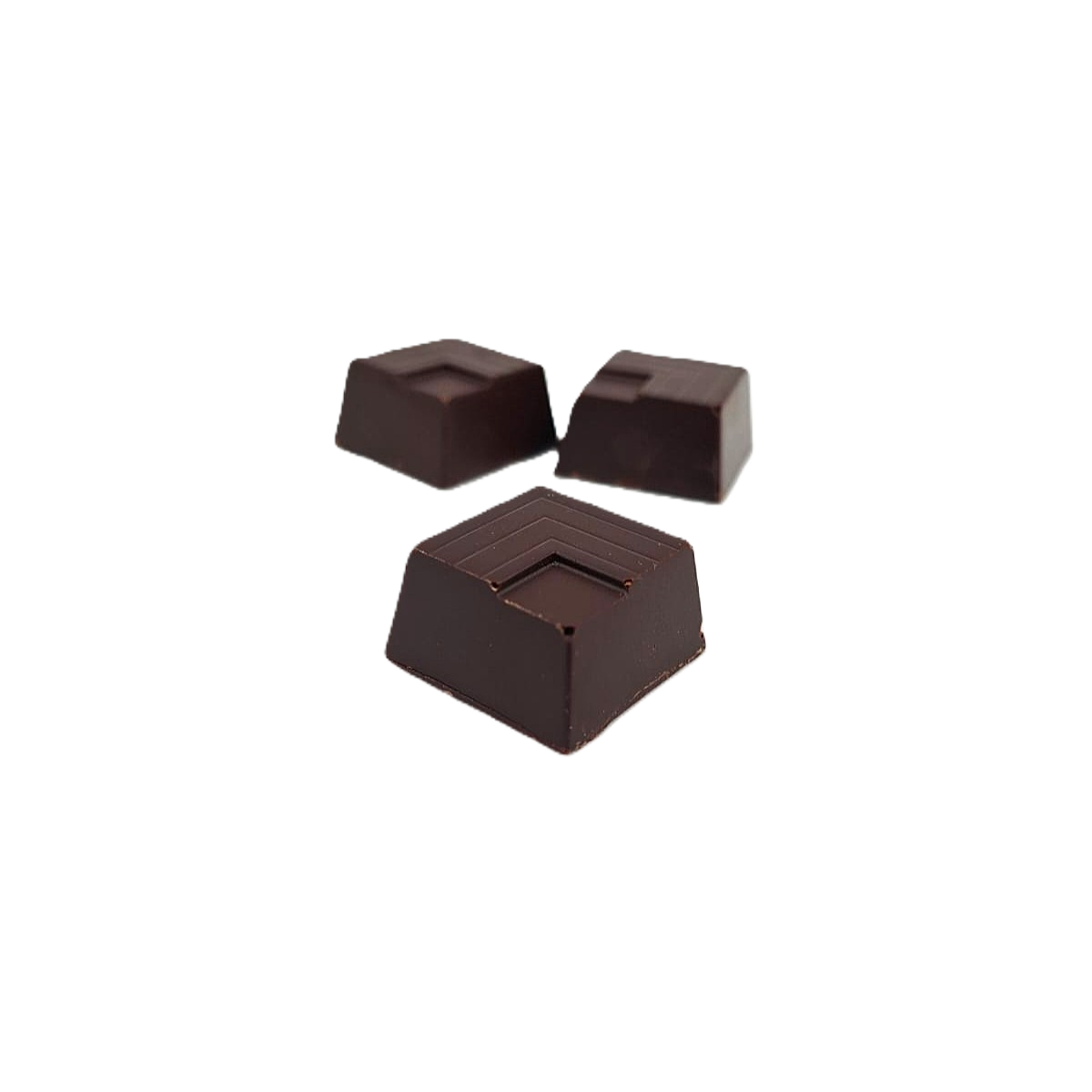 Rzemieślnicza pralinka w korpusie z gorzkiej czekolady z kremowym, truflowym nadzieniem na bazie gorzkiej czekolady i aromatycznego rumu. Intensywna, wytrawna i elegancka – idealna dla miłośników głębokich smaków kakao.