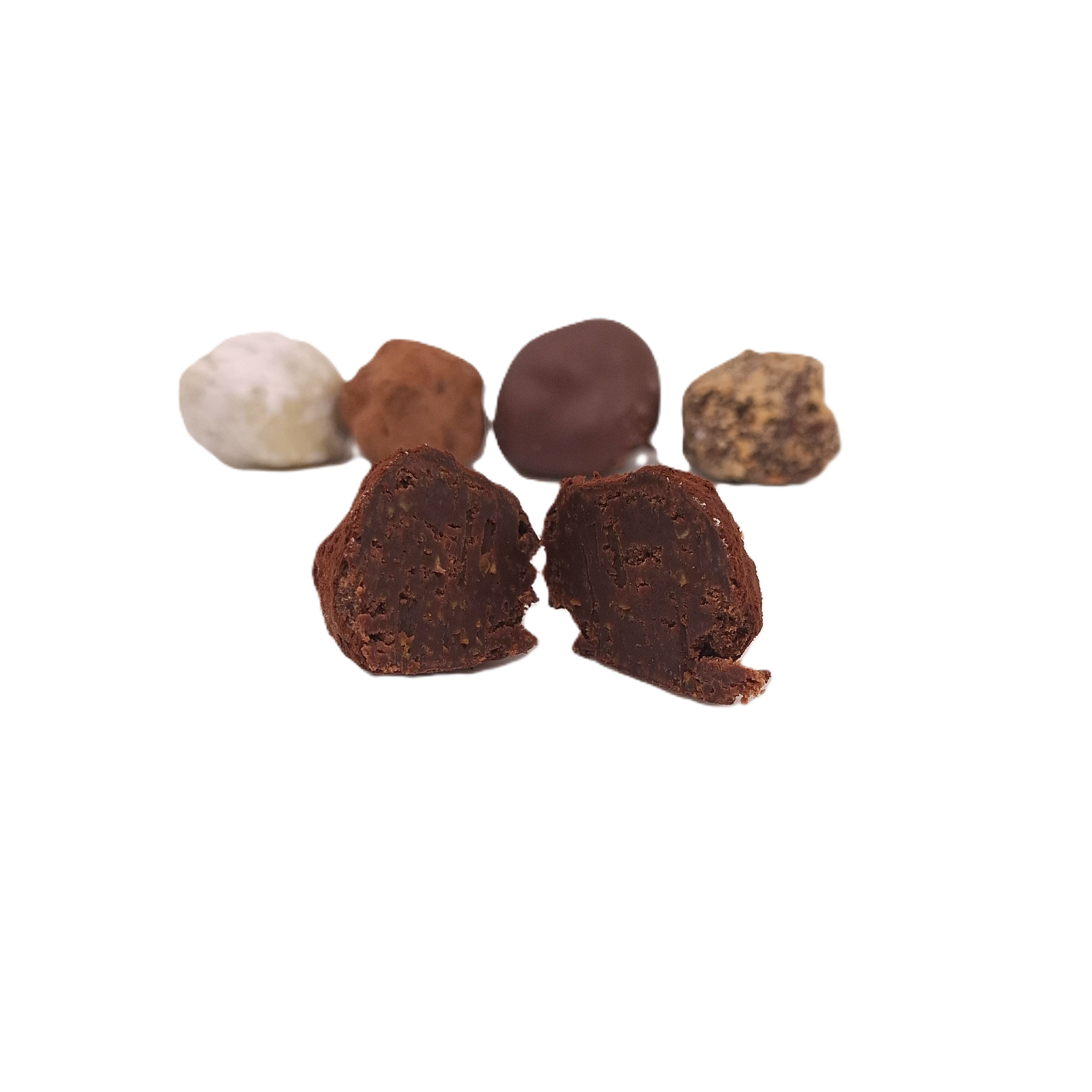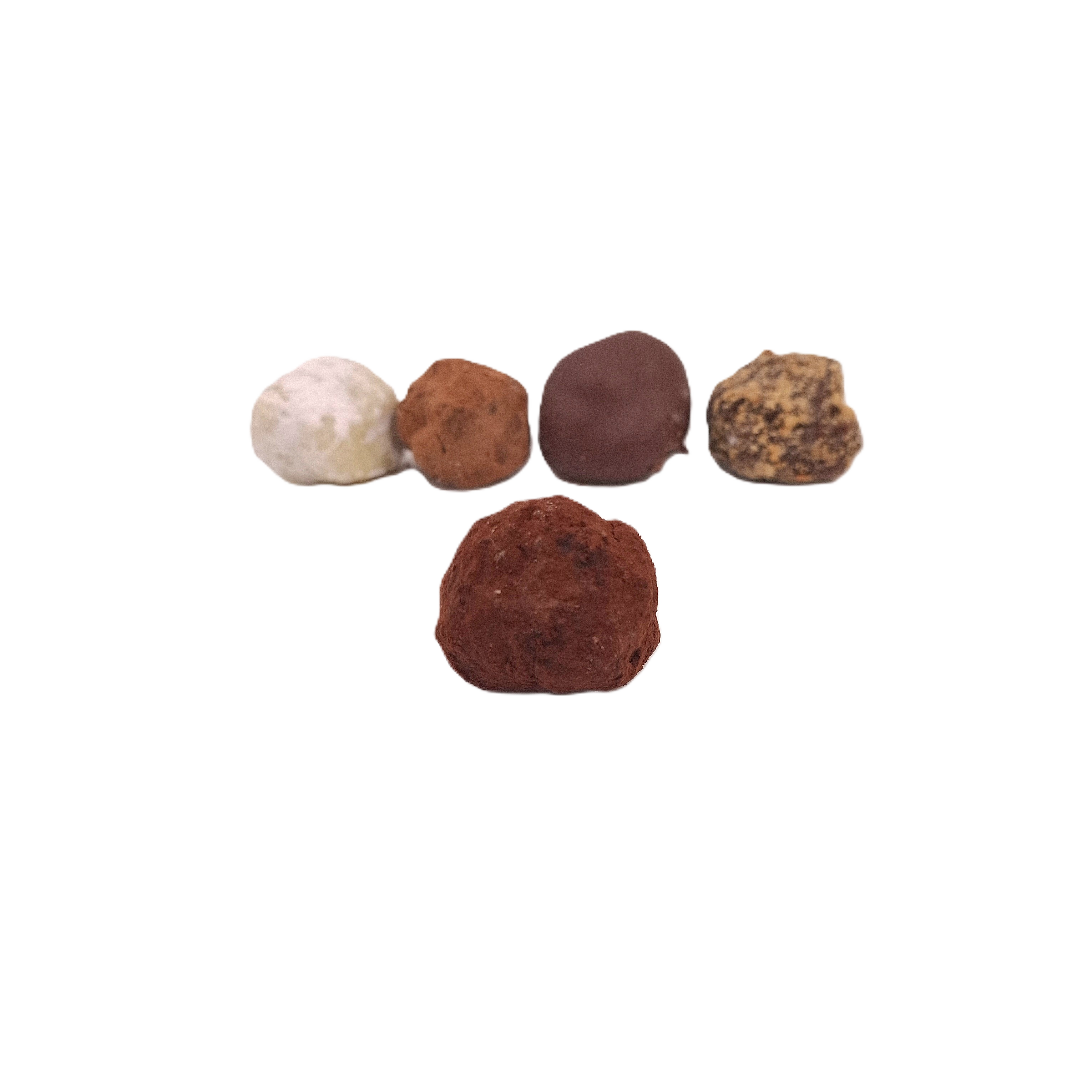 Trufla pomarańczowa to słodka, kremowa propozycja stworzona z mlecznej czekolady i naturalnej skórki pomarańczowej. Intensywnie aromatyczna, świeża, owocowa i delikatnie obtoczona w kakao. Ręcznie produkowana w małych ilościach — idealna dla osób kochających cytrusowe desery.