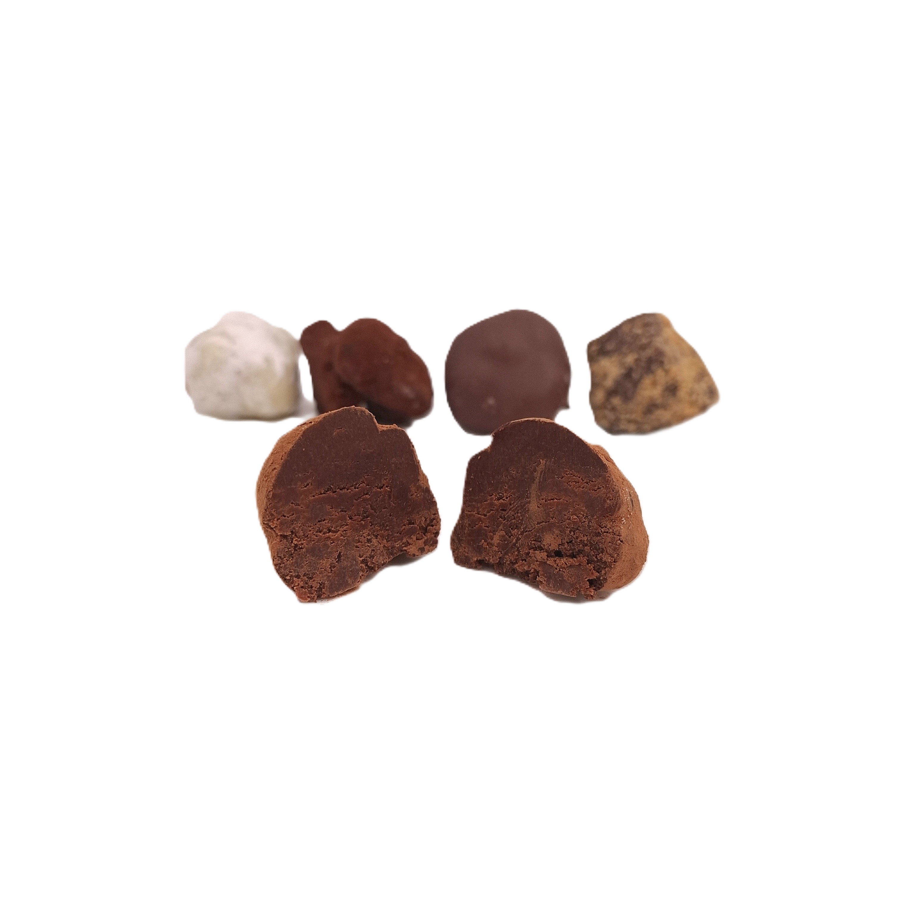 Rzemieślnicza trufla kawowa o głębokim, wytrawnym charakterze świeżo palonej kawy, z dodatkiem likieru kawowego i kremowej mieszanki własnych czekolad. Intensywna, aromatyczna, ręcznie tworzona i obtoczona w kakao. Idealna dla miłośników kawy i eleganckich, nieszablonowych słodkości.